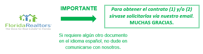 Florida Realtors tuvo la iniciativa de traducir estos 2 contratos del idioma inglés al español con el propósito de dar facilidades de mayor entendimiento a los interesados de la comunidad latina a comprender la documentación que firman legalmente en inglés, evitando así que lo hagan ciegamente.